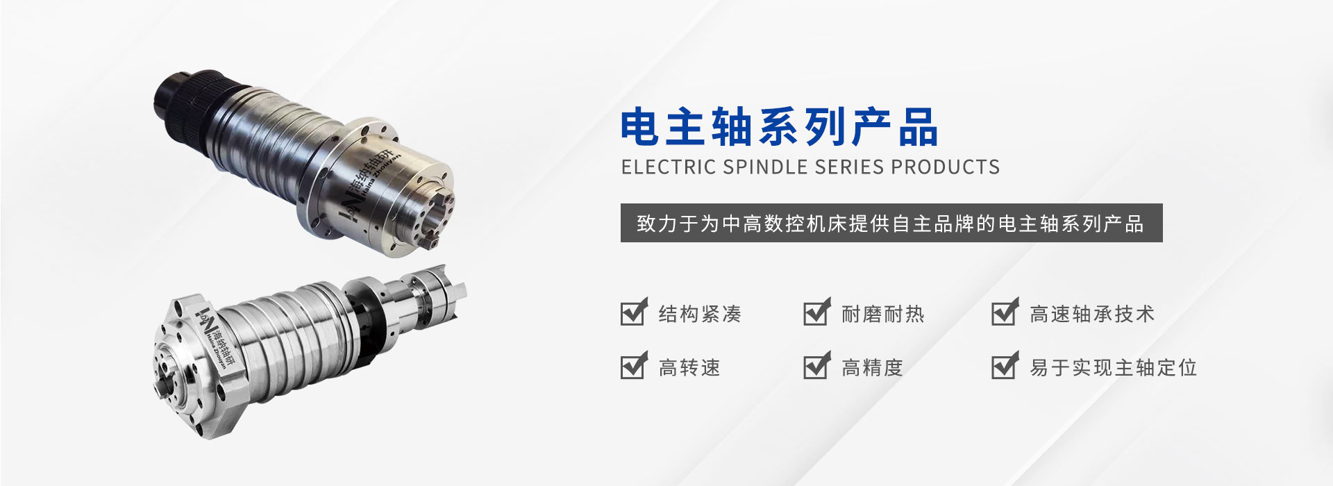 公司致力于為中高數(shù)控機床提供自主研發(fā)自主品牌的電主軸系列產(chǎn)品,通過堅持不懈的技術(shù)攻關(guān)和持之以恒的品質(zhì)管理,嚴(yán)格生產(chǎn)工序控制,售前售后的緊密跟蹤逐步形成一套完整成熟的業(yè)務(wù)體系。為不同類型機床提供主軸設(shè)計,現(xiàn)有數(shù)控車床主軸單元,數(shù)控車床電主軸、加工中 心電主軸及直聯(lián)機械主軸,走心車床電主軸,機械主軸,磨床電主軸,光伏主軸等系列主軸產(chǎn)品。